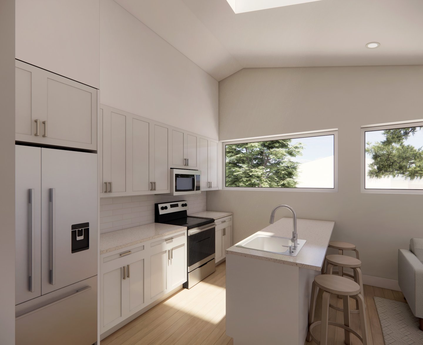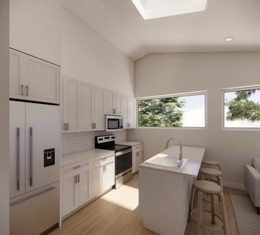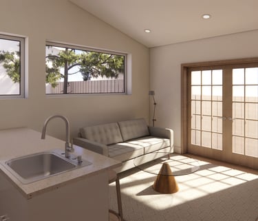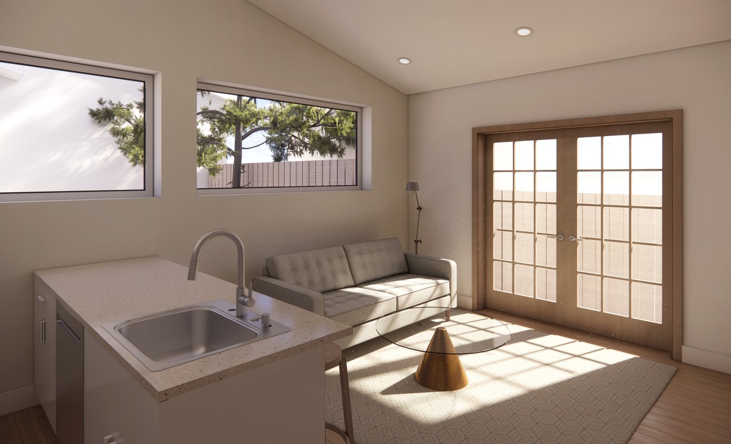 The Burlingame DADU is an efficient and budget-conscious addition for a growing family near San Francisco, California, who were keen to explore additional avenues for income generation. This 850sf two bedroom accessory dwelling unit employs carefully considered windows and bright interior surfaces to create light-filled and voluminous space within a smaller footprint.
